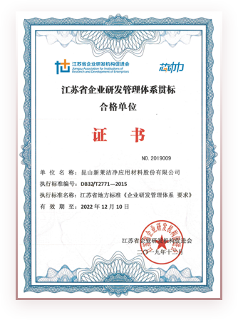 2020年12月2日昆山新莱洁净应用材料股份有限公司荣获江苏省高新技术企业证书。